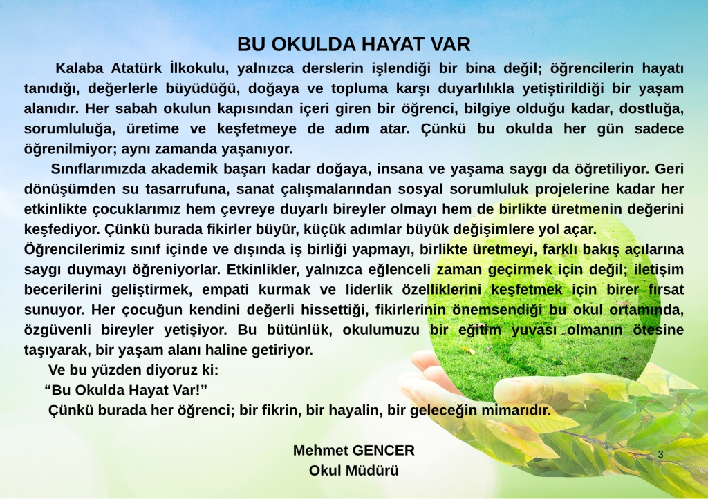 Doğayı yalnızca kitaplardan öğrenmekle kalmadık; hissettik, dokunduk, ürettik ve onu sevmenin en doğal yollarını keşfettik. Bu dergide yer alan her etkinlik, doğaya duyulan büyük bir sevginin ve çocuklarımızın bitmeyen merakının bir ürünü.